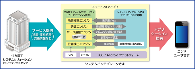 iOSやAndroid上で、道路交通情報を活用したカーナビゲーション開発を強力にサポートする開発キットを紹介します。