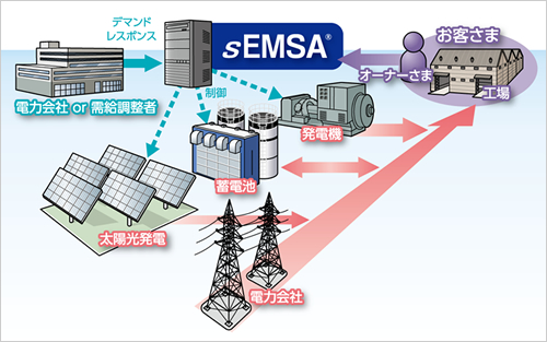 近年、省エネルギー社会実現に向けて、工場や企業などの電力の大規模需要家における再生可能エネルギーなどを使用した分散型の電力システムの活用がますます高まっています。会場にてパネルで紹介する製品の1つ、エネルギー・マネジメント・システム「sEMSA®」は、再生可能エネルギーを含むさまざまな分散電源の構成に対して、エネルギーを効率よく使い、環境負荷の軽減やコストを最小化する最適な電力運用を可能にします。