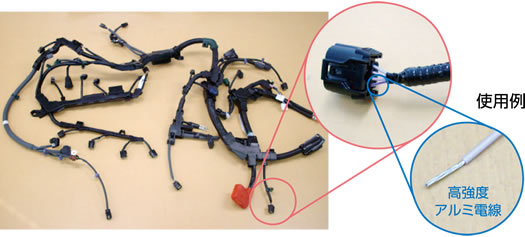 こうしたなか、当社グループでは、従来、銅電線を用いていた自動車用ワイヤーハーネスにアルミ電線を適用すべく、いち早く開発に取り組み、2010年よりアルミ電線を室内ハーネスへ搭載開始し、立ち上げ時期、搭載車種数とも、トップランナーとして実績を残してきました。しかし、既開発の「標準アルミ合金電線」は、従来の銅電線に比べ耐振動性が低いため、適用範囲が自動車室内やインパネ配線などに限られていました。