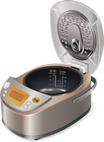 また、アルミとフッ素樹脂を物理的に強固に接着しているため、深絞り加工や、フッ素樹脂コート面への目盛りなどの印刷が可能です。さらに、フッ素樹脂としてPTFE(四フッ化エチレン樹脂)、PFAを使用しているため、優れた非粘着性、耐熱性(連続使用温度260℃)、耐食性を有しています。このような特長から、ジャー炊飯器などの内鍋、ホームベーカリーのパンケースなどの家庭用品に採用されています。