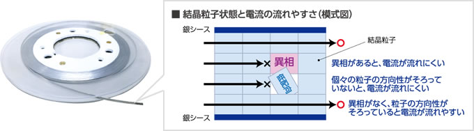 当社のビスマス系超電導線材は、電流が流れるビスマス系酸化物を銀シースで被覆する構造になっています。酸化物は細かい結晶粒子の集まりですが、異相(異物となる結晶粒子)が多い、あるいは、低配向(個々の粒子の方向がそろっていない状態)が発生すると、超電導線全体に流れる最大の電流(臨界電流性能)が低下します。放射光で分析した結果、銀シース内の異相や低配向の発生は、製造条件で大きく変化することが分かり、それらを低減できる条件を確立しました。その結果、世界最高の臨界電流を実現しています。