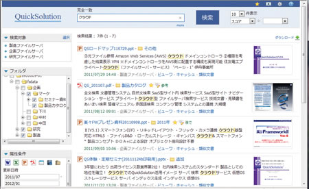 検索対象の選択、高度な検索条件の入力および検索結果の表示を一画面でシームレスに操作できるようになりました。また、ファイルサーバの検索の際に、画面左側にWindowsエクスプローラー風のフォルダーツリーを表示させることにより、直感的な絞り込み検索が可能となりました。