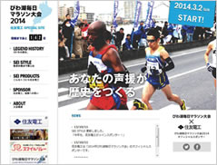 当社は、伝統ある本大会のサポートを通じ、地域社会の活性化、スポーツ支援に寄与していきます。また今年も、「びわ湖毎日マラソン大会2014 住友電工 SPECIAL SITE」から、さまざまな情報を発信していきます。