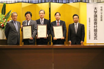 また、食糧と競合しない燃料作物の研究に取り組む大阪大学の「国際環境生物工学講座」、アルツハイマー病の診断に使える物質の開発に取り組む東北大学の「ニューロ・イメージング研究」の2講座にも引き続き寄付を継続することが決定し、2月26日に贈呈式が行われました。