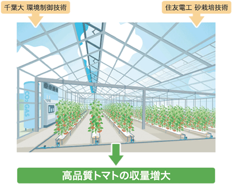 当社と国立大学法人千葉大学(以下、千葉大)は、当社がこれまで研究開発を進めてきた砂栽培技術と、千葉大の先端的な栽培環境制御技術を融合させ、高糖度トマトの収量の大幅増をめざす実証試験を開始します。