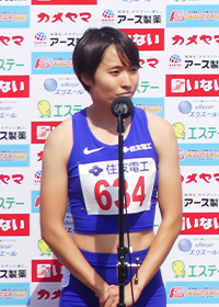 御家瀬 緑<女子100m 11"56 優勝> シーズンベストで優勝できて嬉しいです。周りを気にせず、最後まで落ち着いて走ることができました。タイムはまだまだなので、日本選手権でさらに上げていけるようしっかり調整していきたいと思います。