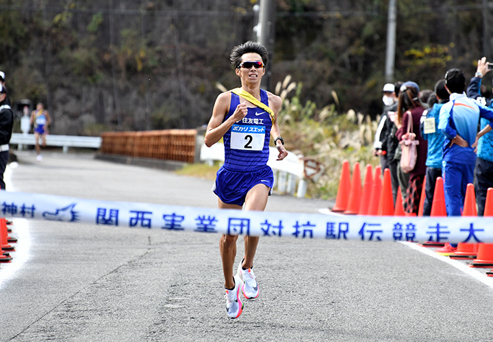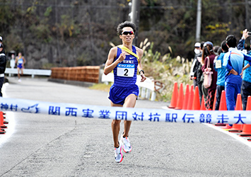 このような状況の中、大会を開催していただきありがとうございました。初めての関西実業団駅伝となりましたが、自分の力は出すことができたと思います。しかし前を走るチームとの差を広げる結果となってしまったので、今回で得た課題と経験を活かせるように頑張っていきたいです。また、ニューイヤー駅伝で出走してチームの入賞に貢献できるように日々の練習を頑張りたいと思います。